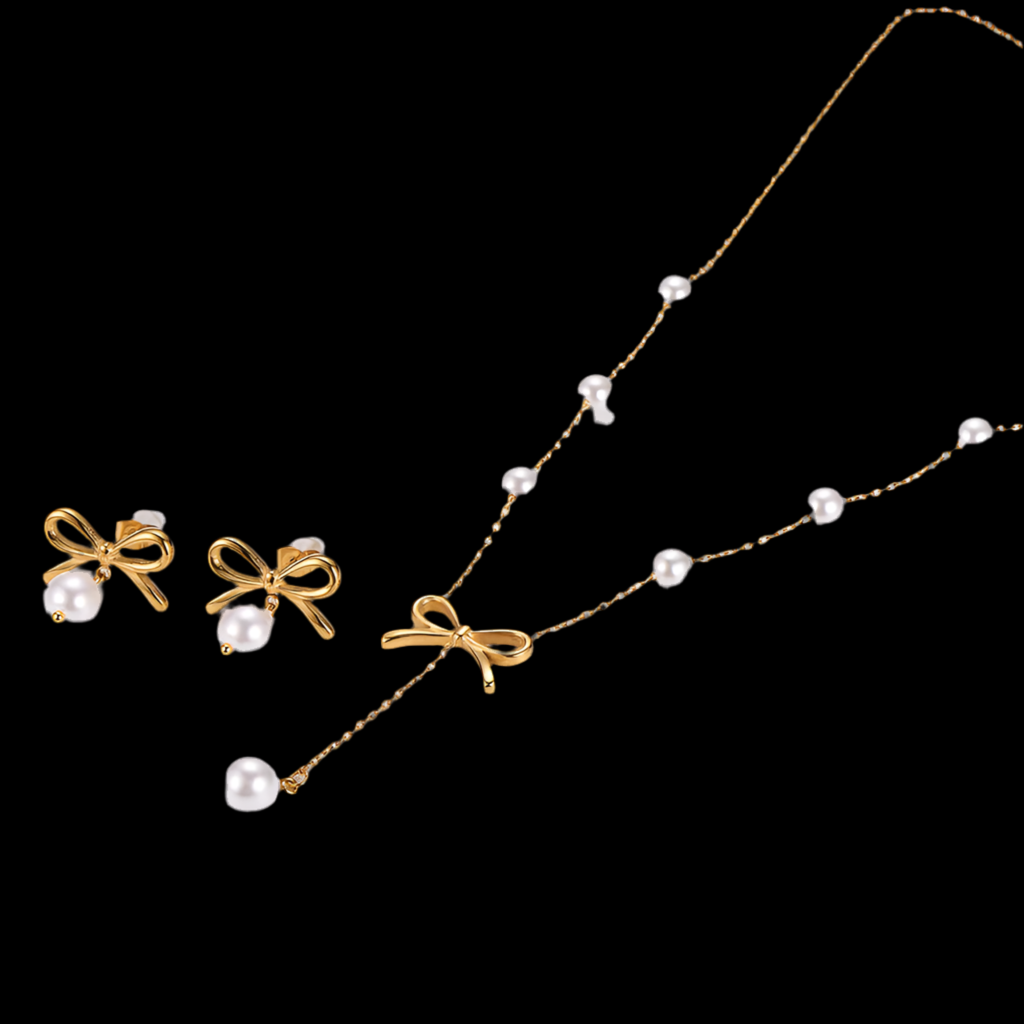 Collar y Pendientes de Acero Inoxidable con Nudo de Lazo